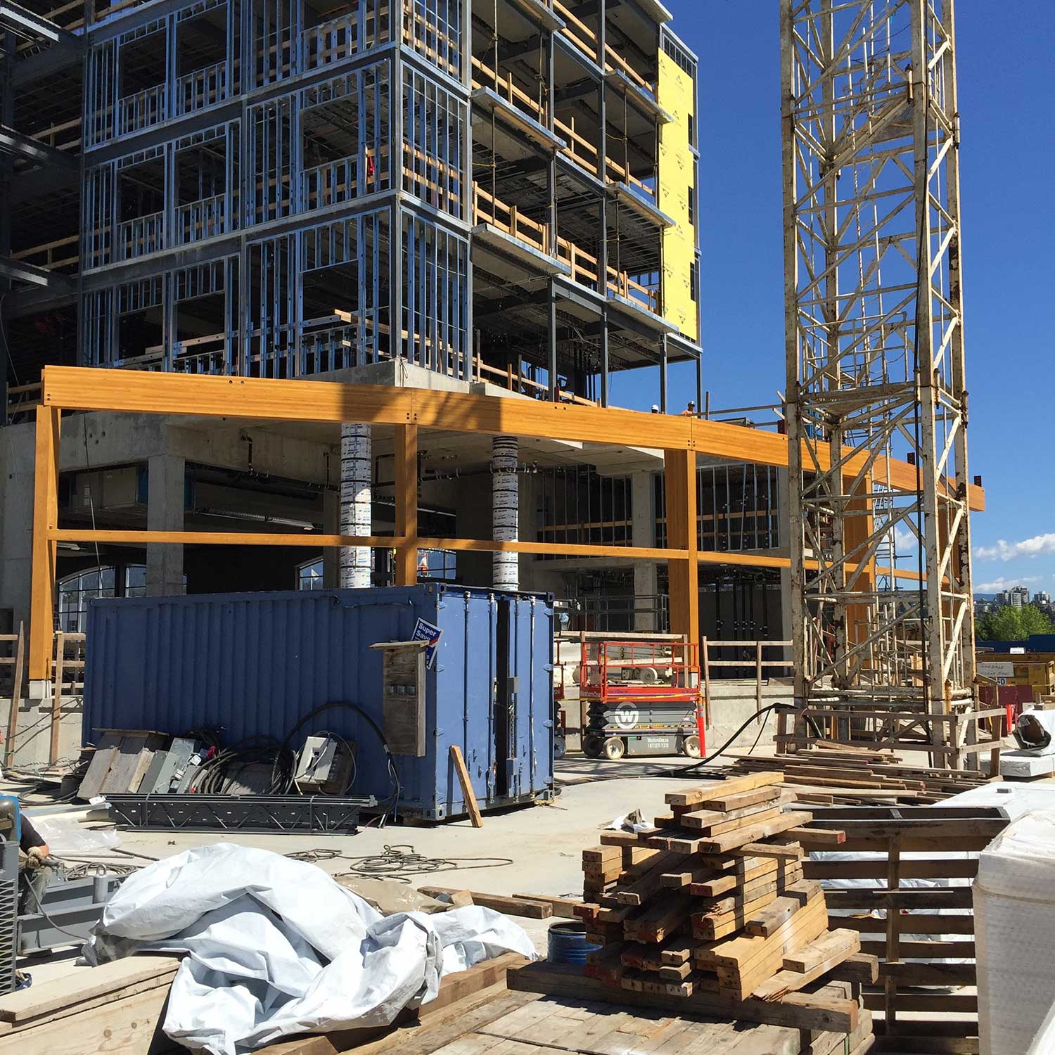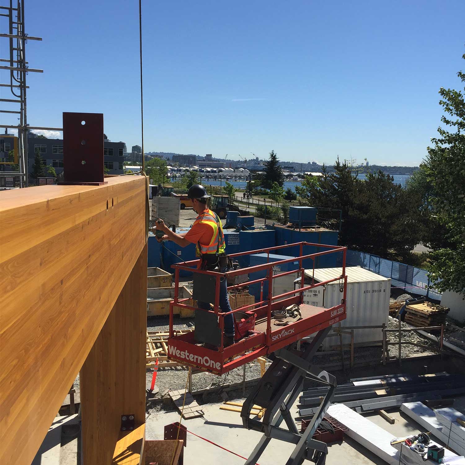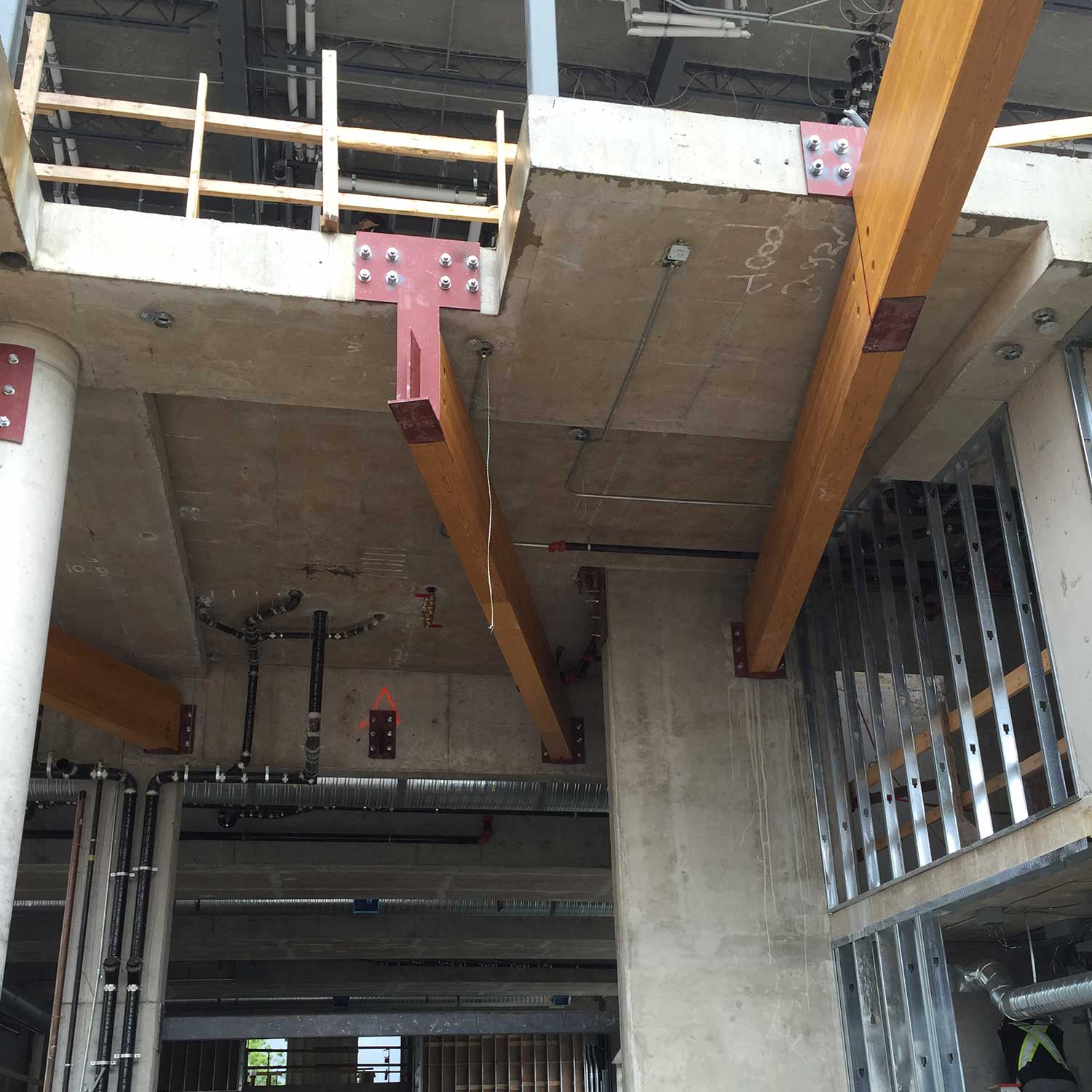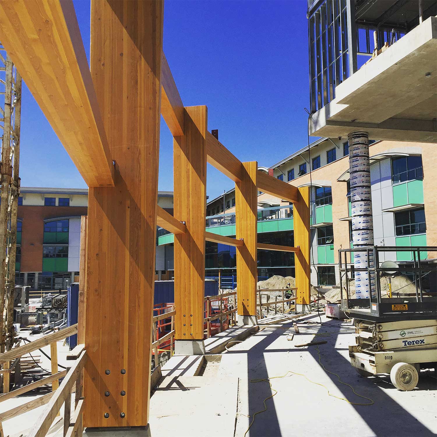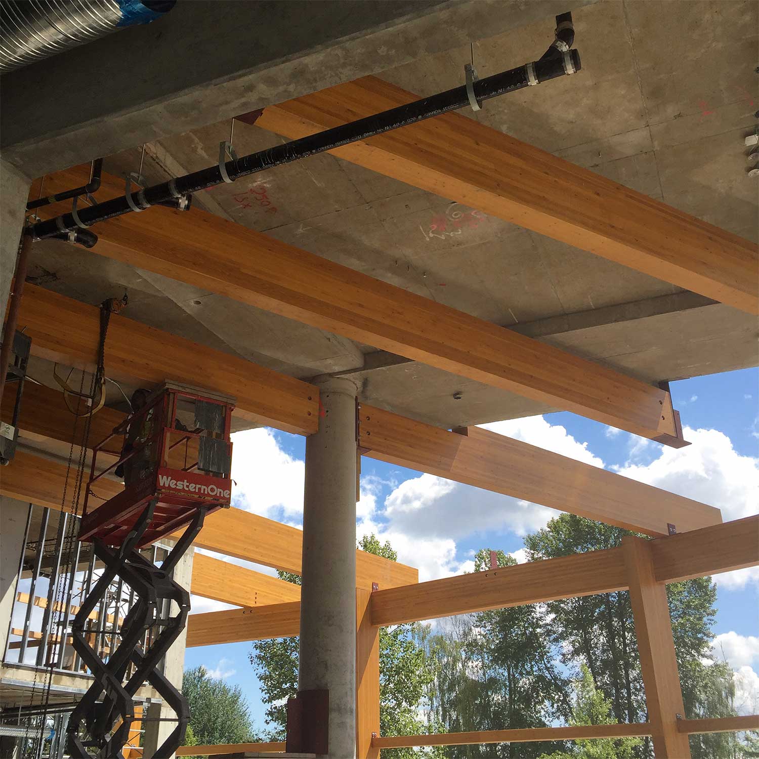 Glue lam build consisting of a new cafeteria and connection breezeways from the new school building to the existing school.