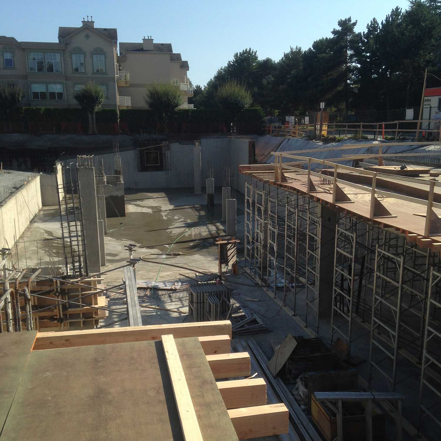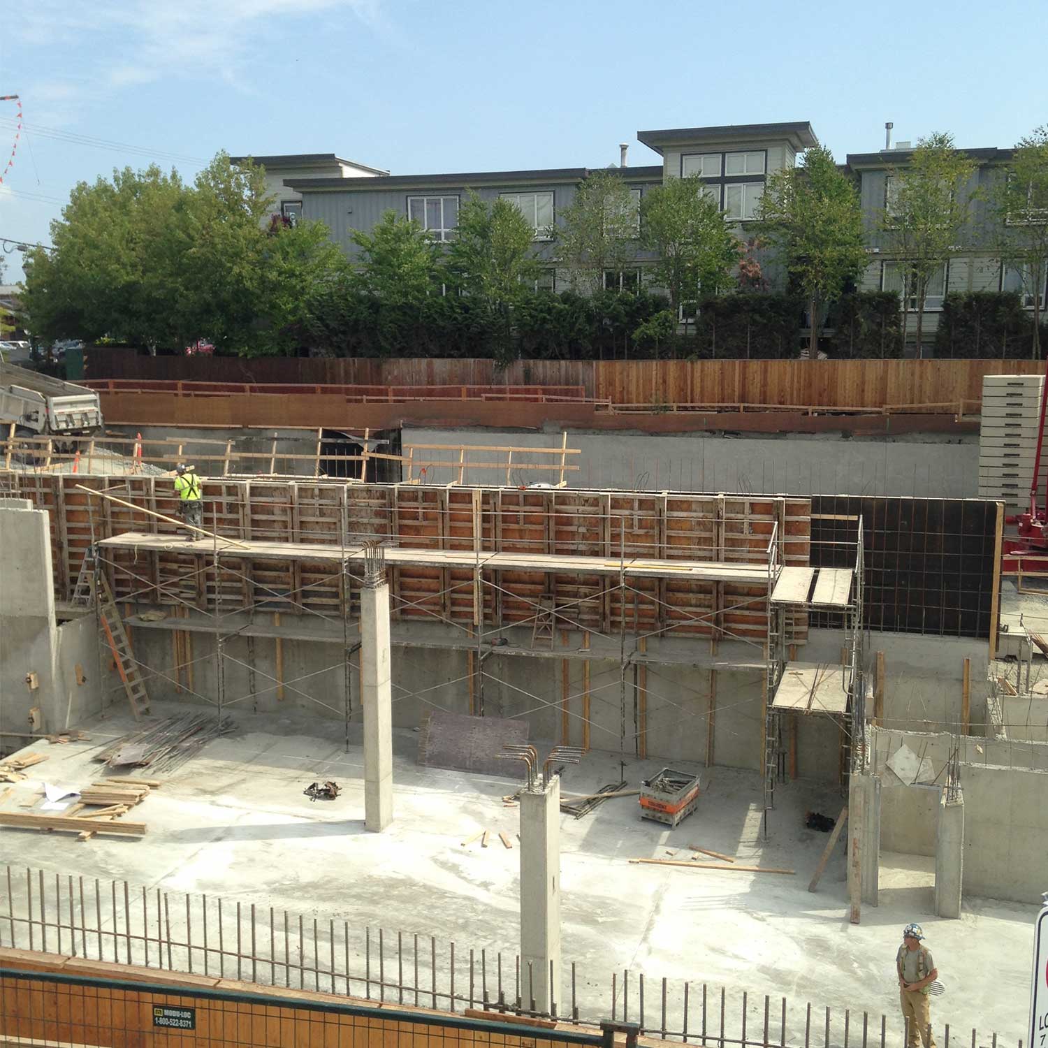 2 level parkade with four story 67 unit wood frame, low rise condominiums.