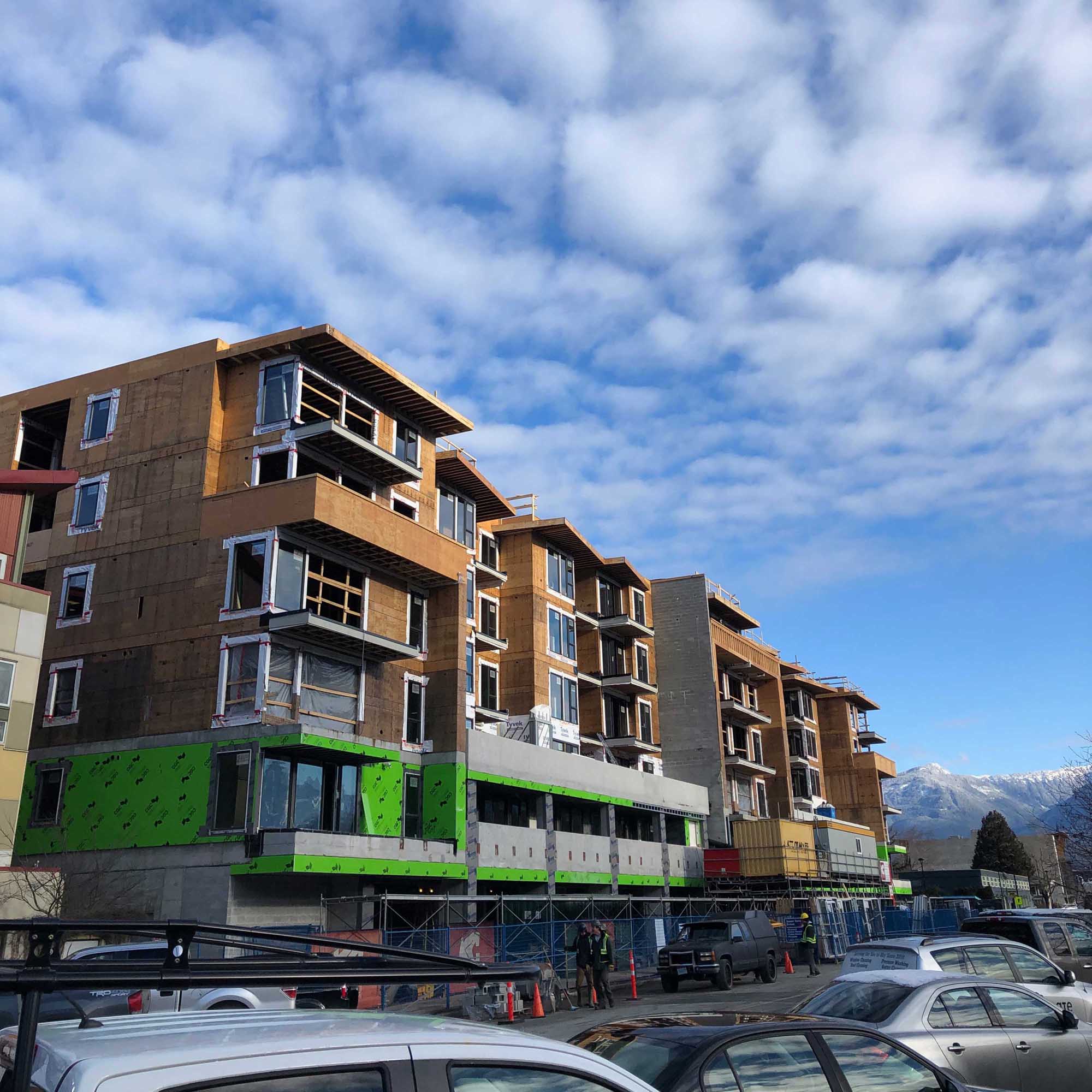 90,000 square ft, 4 story wood frame condominuims in downtown Squamish
